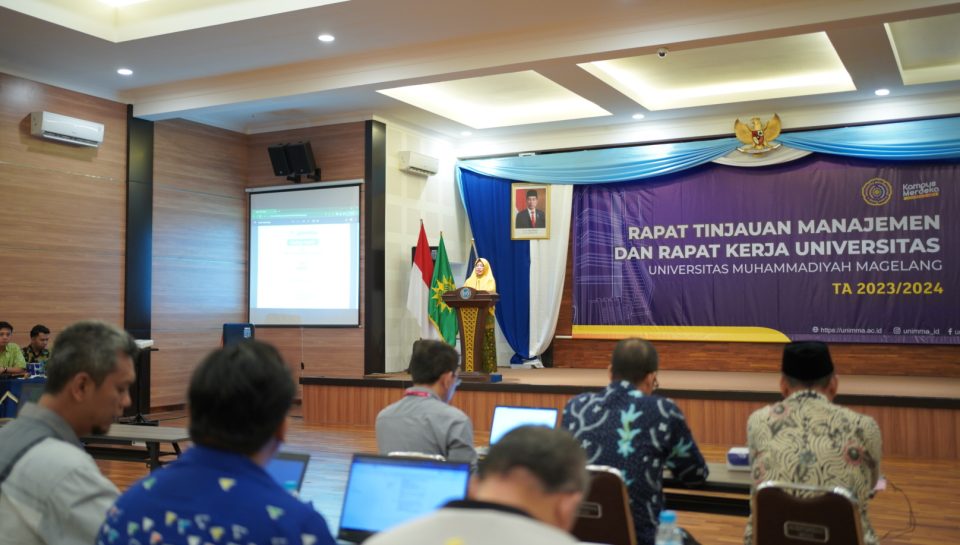 Universitas Muhammadiyah Magelang (UNIMMA) menggelar agenda rutin Rapat Tinjauan Manajemen (RTM) Tahun Anggaran (TA) 2023/2024. Acara berlangsung pada Senin (13/11) di Auditorium Kampus 1 UNIMMA dipimpin oleh Rektor beserta jajarannya dan diikuti oleh Dekan, Wakil Dekan, Ketua Program Studi (kaprodi), Gugus Kendali Mutu (GKM) Fakultas, dan seluruh Kepala Suporting Unit.