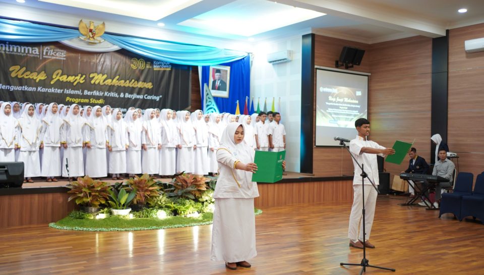 Fakultas Ilmu Kesehatan (Fikes) Universitas Muhammadiyah Magelang (UNIMMA) menggelar Capping Day (Ucap Janji) bagi mahasiswa D3 Keperawatan dan S1 Ilmu Keperawatan Tahun Akademik 2023/2024. Agenda tahunan ini merupakan acara seremoni untuk mempersiapkan mahasiswa yang akan menjalani praktek lapangan. Dengan tema ‘Menguatkan Karakter Islami, Berfikir Kritis dan Berjiwa Caring’, acara dilaksanakan di Auditorium Kampus 1 pada Sabtu (7/6).