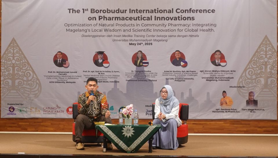 Universitas Muhammadiyah Magelang (UNIMMA), melalui Himpunan Mahasiswa Farmasi (HIMAFA) sukses menyelenggarakan The 1st Borobudur International Conference on Pharmaceutical Innovations (BICPI) pada Sabtu (24/5). Konferensi internasional ini mengusung tema “Optimization of Natural Products in Community Pharmacy: Integrating Magelang’s Local Wisdom and Scientific Innovation for Global Health”, yang bertujuan menggabungkan kearifan lokal dengan inovasi ilmiah untuk solusi kesehatan global.